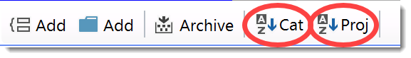 The project category and project items of the experiment tree can be sorted independently using the sort toggle buttons in the experiment tree toolbar. If a sort button is checked, the corresponding tree items are sorted alphabetically. Otherwise the most recent item is on top.